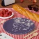 These stylish paper plates featuring pretty string lights and a hand-drawn floral can be personalised with your information in chic white lettering on a purple background. Designed by Thisisnotme©
