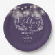 String Lights Floral Purple Script Wedding Paper Plate