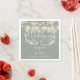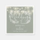 These stylish napkins featuring pretty string lights and a hand-drawn floral can be personalised with your information in chic white lettering on a sage green background. Designed by Thisisnotme©