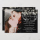 A black and white wedding invitation featuring pretty string lights and a delicate hand-drawn rustic floral garland of botanical leaf foliage with stylish script typography. Personalise with all your special wedding day information on the reverse including your RSVP, accommodation, and additional details. Designed by Thisisnotme©