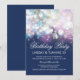 Navy birthday party invitations with glamour vintage string lights shine