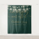 Featuring pretty string lights and chic gold typography script on an emerald green background, this chic wedding photo booth backdrop can be personalized with your names and special date. Designed by Thisisnotme©