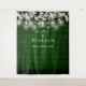 A rustic photo booth backdrop featuring pretty sage, lilac leaves, and string lights on a background of emerald green wood panels. Personalise with your names and special date. Perfect for weddings, engagements, bridal showers or any other special occasion. Designed by Thisisnotme©