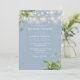 This elegant eucalyptus greenery botanical string lights dusty blue wedding invitation can be personalised with your information in chic typography with your special photo on the reverse. Designed by Thisisnotme©