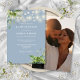 String Lights Greenery Dusty Blue Photo Wedding Invitation