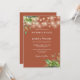 This elegant eucalyptus greenery botanical string lights terracotta wedding invitation can be personalised with your information in chic typography with your wedding website QR code on the reverse. Designed by Thisisnotme©