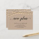 This is the modern minimal clean rustic string lights, Kraft design themed, in Black font, Wedding party invitation Rescheduled (postponed / postponement) postcard (New Plan) . It is the perfect and elegant way to make the reschedule announcement to your friends and family.