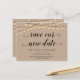This is the modern minimal clean rustic string lights, Kraft design themed, in Black font, Wedding party invitation Rescheduled (postponed / postponement) postcard (Save our new date) . It is the perfect and elegant way to make the reschedule announcement to your friends and family.