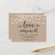 This is the modern minimal Rustic Kraft String lights, in Black font, Wedding party invitation Rescheduled (postponed / postponement) postcard (Love conquers all) . It is the perfect to make the reschedule announcement to your friends and family.