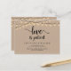 This is the modern minimal clean rustic farm kraft String Lights design themed, in Black font, Wedding party invitation Rescheduled (postponed / postponement) postcard (Love is Patient) . It is the perfect and elegant way to make the reschedule announcement to your friends and family.