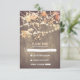 Rustic wedding reply cards with beautiful sparkly string lights hanging on the blooming tree branches.