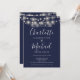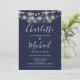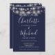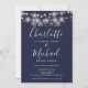 String Lights Navy Blue All In One Simple Wedding Invitation