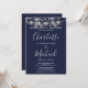 String Lights Navy Blue Script Rehearsal Dinner Invitation