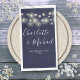 Navy blue elegant signature wedding design featuring pretty string lights and signature style names. These modern guest paper towels can be personalised with your information in chic white lettering. Designed by Thisisnotme©