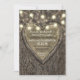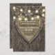 String Lights + Oak Tree Bark Wedding Invitations - features a carved heart, string lights and tiny twinkle lights scattered at the top. The background features a tree bark background.