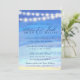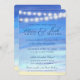 Beautiful ocean background with light and dark blue water with soft string lights overhead. Ocean waters meet the gorgeous tan sandy background. Perfect invitation for your destination or beach wedding. Easily edit text and fonts on this watercolor design.