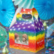 Joint birthday favour box featuring a colourful rainbow background and shinny string light, with vibrant typography and one photos of your choice.
