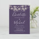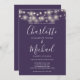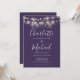 Elegant purple signature wedding invitation featuring pretty string lights and signature style names, this stylish wedding invitation can be personalised with your information in chic white lettering. Designed by Thisisnotme©