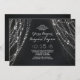 chalkboard chic rehearsal dinner invitation with string of lights backdrop.