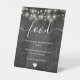 String Lights Rustic Black Barn Wood Food Menu Pedestal Sign