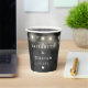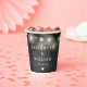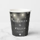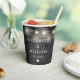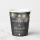 These string lights rustic black wood boho barn wedding paper cups can be personalised with your information in chic typography. Designed by Thisisnotme©