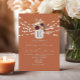 Invite your guests to a truly special occasion with our elegant formal wedding invitation, embracing rustic country charm in rich orange hues. Adorned with a monogram and delicate watercolor burgundy flowers nestled in mason jars, complemented by the soft glow of string lights and finished with trendy calligraphy script. It sets the stage for an unforgettable celebration filled with warmth and love.