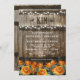 RUSTIC ROSE STRING OF LIGHTS WEDDING INVITATION | Country barn wood barrel background, twinkle string lights,orange rose's and baby breath flowers, your monogram and modern wedding wording. Find other wooden wedding invitations at http://www.zazzle.com/special_stationery*
