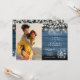 A stylish wedding invitation featuring your special photo and pretty sage and lilac leaves, string lights, mason jars and your wedding details set in elegant text on a blue rustic wood background. Designed by Thisisnotme©