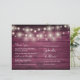 A stylish rustic wedding program featuring pretty string lights on a rustic burgundy red wood background. Add your special wedding ceremony details set in chic stylish typography. Hand fold to create a beautiful folded wedding program. Designed by Thisisnotme©