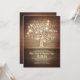 Charming rustic country engagement party invitation with old carved tree and hanging string of lights. Romantic wooden.