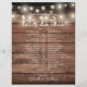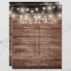 This rustic string lights wedding schedule-timeline can be personalised with your wedding details set chic white lettering on a wood panels background. Designed by Thisisnotme©