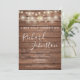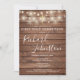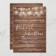 A rustic first holy communion invitation featuring pretty string lights, gold cross and an elegant script signature name on a wood panels background. Personalise with your special event information. Designed by Thisisnotme©