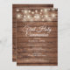 A rustic first holy communion invitation featuring pretty string lights and your special personalised details set in chic typography on a wood panels background. Designed by Thisisnotme©