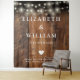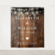 This string lights rustic wood boho barn wedding backdrop can be personalised with your information in chic typography. Designed by Thisisnotme©