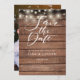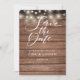 String Lights Rustic Wood Script Photo Wedding Save The Date
