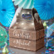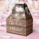 Rustic wedding favour box featuring pretty string lights, chic signature script names and special date on a wood panels background. You can personalise with your own thank you message on the reverse. A perfect way to say thank you to your guests! Designed by Thisisnotme©