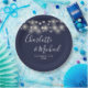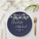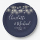 String Lights Signature Script Navy Blue Wedding Paper Plate