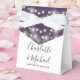 Elegant purple wedding favour box featuring pretty string lights, stylish signature script names and special date set in chic typography. You can personalise it with your own thank you message under the lid. A perfect way to say thank you to your guests! Designed by Thisisnotme©