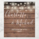 String Lights Signature Script Rustic Wood Wedding Wine Label