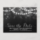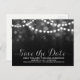 Elegant shining string lights on romantic black and white silver bokeh background Save the date card. This beautiful modern looking bokeh lights design is available in many different colours and you can request any colour of this design by email. Or contact me for any support in design customisation. Matching products available