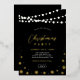 A simply and modern real foil invitation for your Christmas holiday dinner party, company holiday party, or winter business events. This design features stylish string lights, snowflakes, and typography "Holiday PARTY" on a black background. You can add your logo, customise all the text, foil colour or background colour.