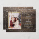 This postcard has all the design quality of a traditional photo card, with the ability to add a handwritten message on the back. This design features a gorgeous rustic wooden background with cute string lights and a subtle snowflake overlay to give it that festive feel. On the left-hand side is your image with a delicate golden border. On the right is some elegant typography in a Christmas tree shape that reads "Merry Christmas & Happy New Year with love from" and then your family name and date.