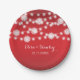 String of lights and white snowflakes red winter wedding paper plate featuring white twinkle glowing string of lights with white snowflakes on the top on red gradient background. This modern and trendy wedding design is part of a wedding set or collection, is fully customisable and is perfect for a winter Christmas wedding, bridal shower, reception, engagement, or anniversary party. Some elements courtesy of vectorportal.com.
