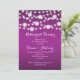 String of lights and white snowflakes purple winter wedding rehearsal dinner invitation featuring white twinkle glowing string of lights with white snowflakes on the top on purple gradient background. This modern and trendy wedding design is part of a wedding set or collection, is fully customisable and is perfect for a winter Christmas wedding. Some elements courtesy of vectorportal.com.