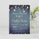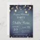 Elegant blue surprise retirement party invitation featuring shimmering string lights and a combination of script and open face typography on a dark blue ombre background graduating from lighter blue in the centre to darker blue on the outer edges for a soft shimmering atmospheric effect. Perfect for men's or women's retirement celebration. For further customisation, please click the "Customise it" button and use our simple design tool to modify this template.