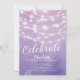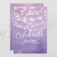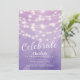 Modern string lights sweet 16 birthday invitation set on a watercolor light purple background. View our matching back for an extra special touch.