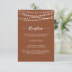 This string lights terracotta wedding reception enclosure card is perfect for a rustic wedding. The design features beautiful hand-painted string lights in a terracotta background.