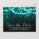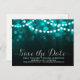 String lights turquoise bokeh save the date announcement postcard