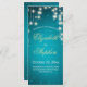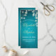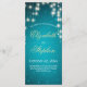 Wedding Program Rack Cards Templates - Elegant Faux Gold Foil Lettering Script and Vintage String Lights with Turquoise Blue Glitter Sparkle Background.