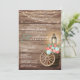 String Lights, Wood Barrel and Teal, Coral Flowers Invitation